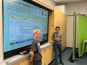 The Learning Lab allows for students to expand and develop their communications skills while in a safe environment so that even if they're nervous or make a mistake, it's ok, and they know no one will judge them for that. It allows students to have fun while learning and to think deeply about STEM topics and practice their writing skills when preparing their speeches using the Communicating Outline Checklist.