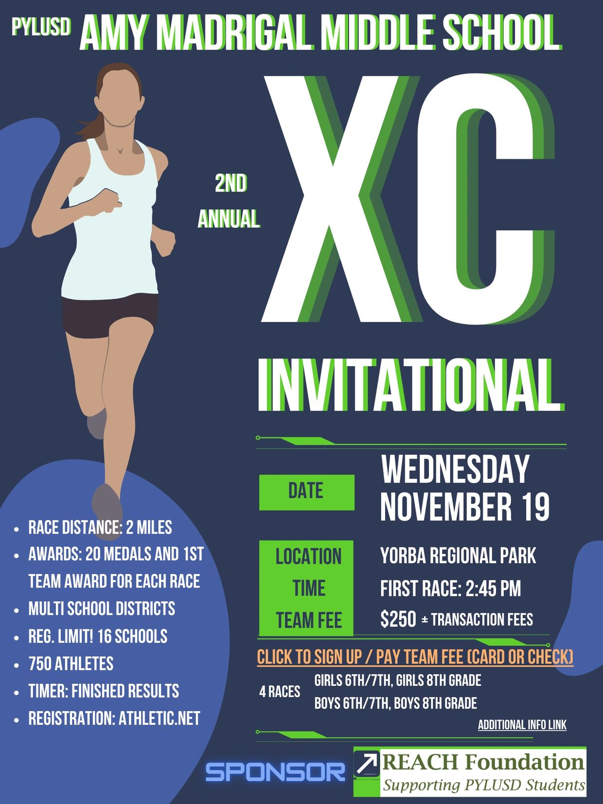 In 2024, the REACH Foundation is proud to partner with PYLUSD and OCDE to sponsor the Middle School XC Invitational and XC Championship! These two programs promote physical health, mental well-being, and academic success. Cross-country like other sports build character by fostering teamwork, leadership, and perseverance. Students learn goal-setting and time management while developing lifelong healthy habits, camaraderie, and sportsmanship.